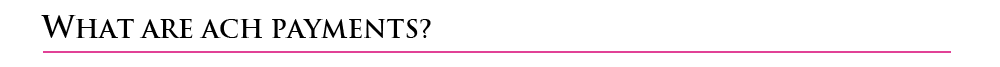 ACH is an electronic payment delivery system which processes electronically originated credit and debit transfers for institutions nationwide. ACH is a rapidly growing alternative for processing Credit cards and paper checks, and handles billions of payments annually. ACH payments are processed by using a customer’s bank account and routing information. By offering ACH capabilities, businesses can contribute to their bottom line by having an alternative payment option for consumers.