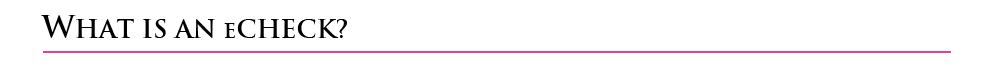 An eCheck is an electronic transaction that enables the consumer to approve payment from his/her checking account using their bank routing and account information. The transaction typically takes two to three business days to clear the consumer's account through the Automated Clearing House (ACH) system.